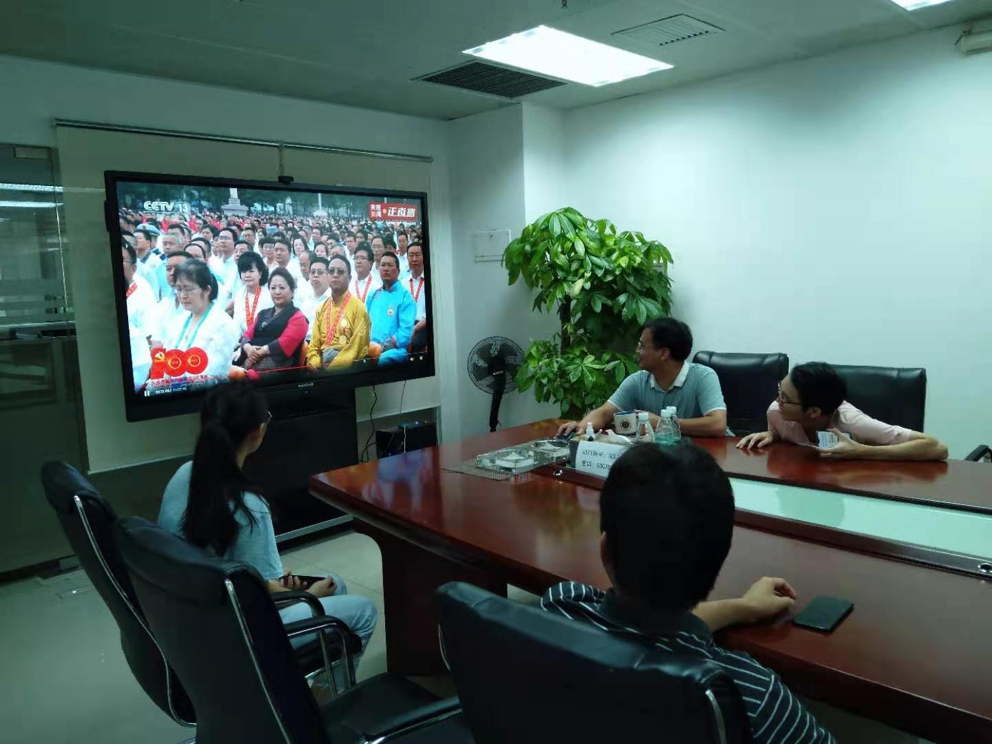 庆祝中国共产党成立100周年,党员、同事到会议室观看直播盛况