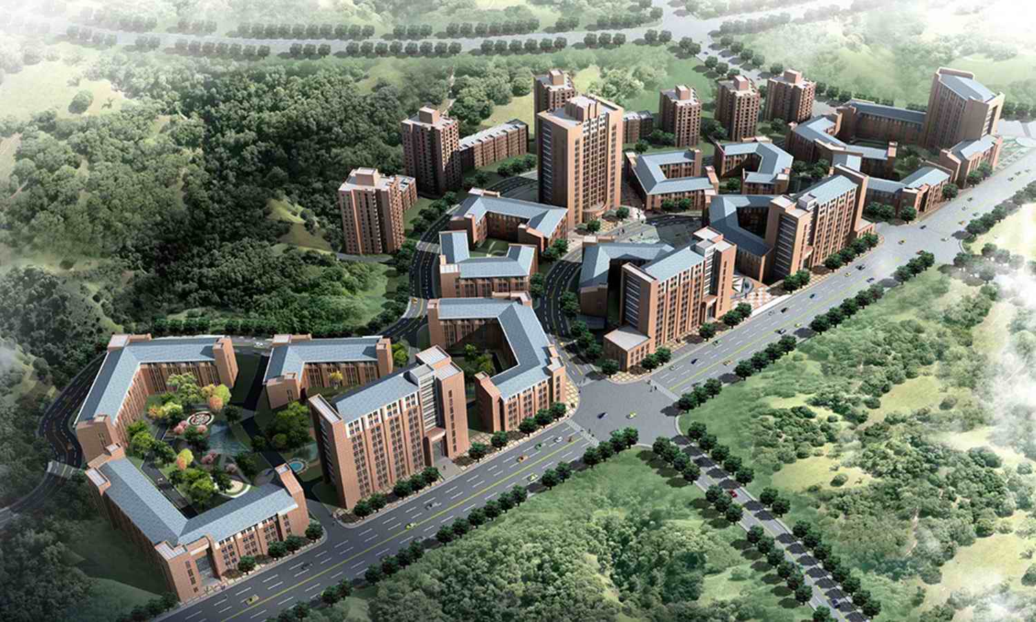 项目位于大连市旅顺口新城区东侧的旅顺龙头镇南,鸡冠山森林公园北面,郭水路两侧,分为南北两区,北区占地面积为31.8万平方米,南区占地面积约9.7万平方米。北区为综合软件服务开发基地,包括软件开发服务、BPO/ITO、研发、数据中心、餐厅及其他附属设施等功能;南区为培训基地及其附属设施,包括培训实训基地,中短期培训教育楼、员工公寓和专家楼等功能。项目设计总体构思采用“软件绿岛”概念,建筑物均为南北向,造型简洁大方,建筑物用地集中在中间,周边用绿化停车和绿化带围合。建筑采用联体设计将整个园区的建筑物用连廊联系,符合大连地区寒冷气候条件下人们联系的需求。