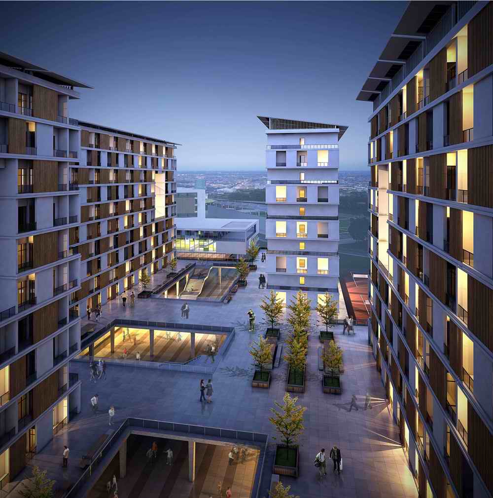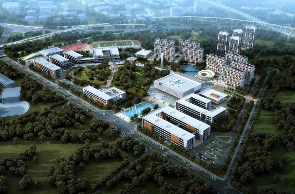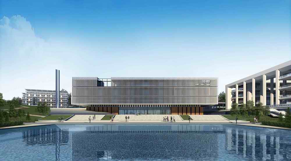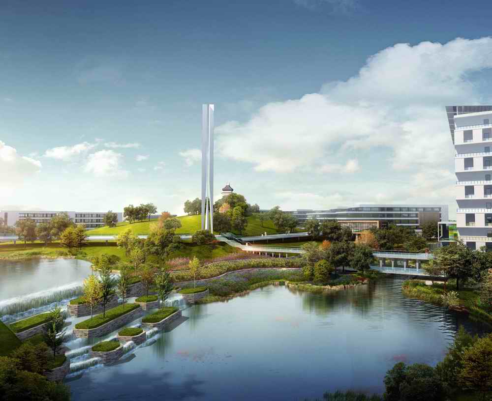 校园整体规划结构呈“两环两轴一带一核心”展开。以水系融合三山景观,多层次游廊一笔呵成。串联将不同功能建筑,整体校园环抱山水景观,打造多元时代感强烈的景观空间格局。