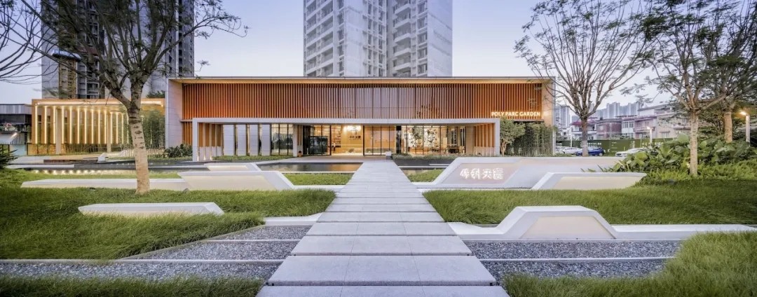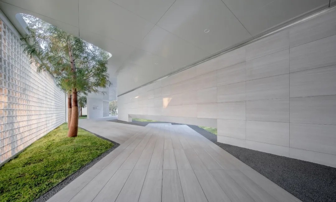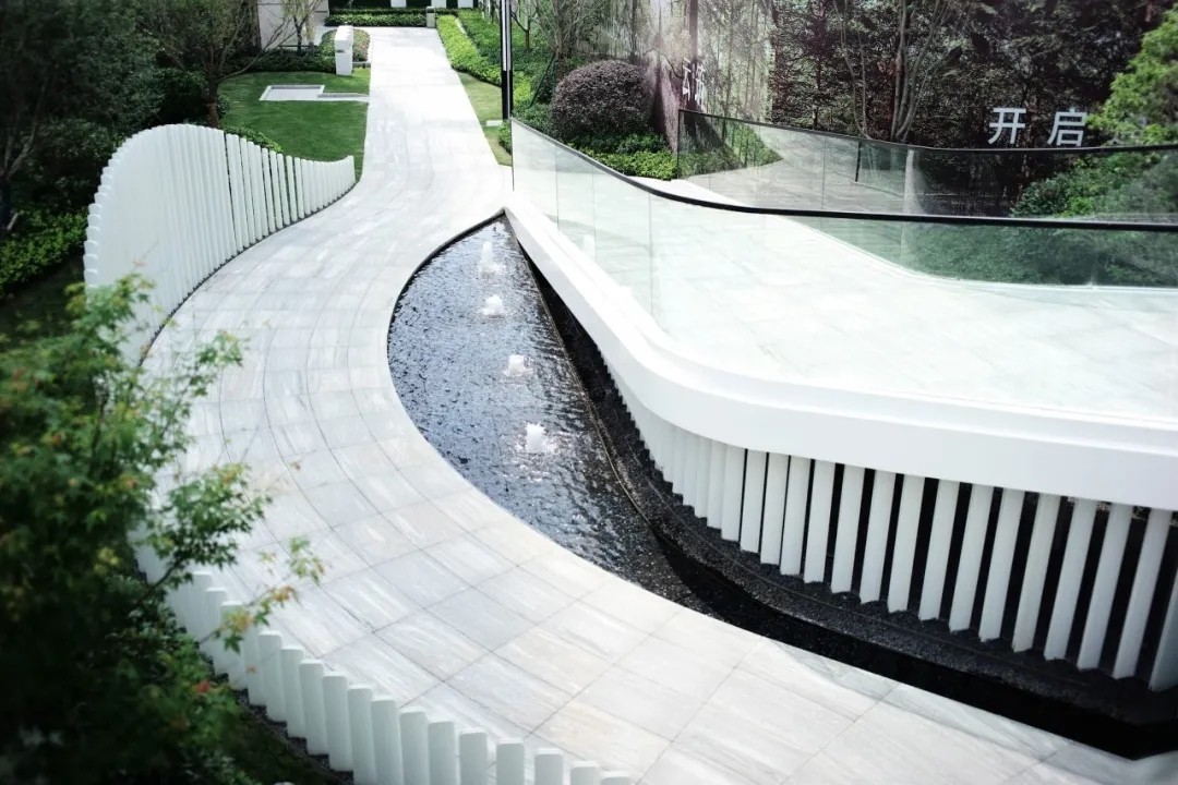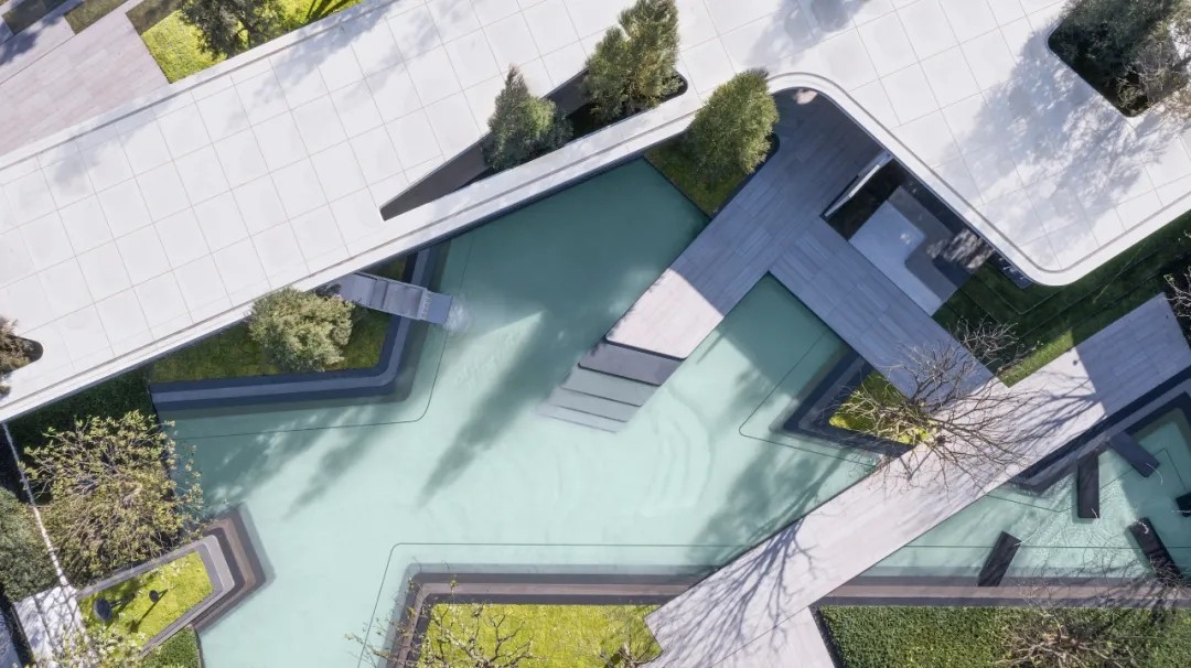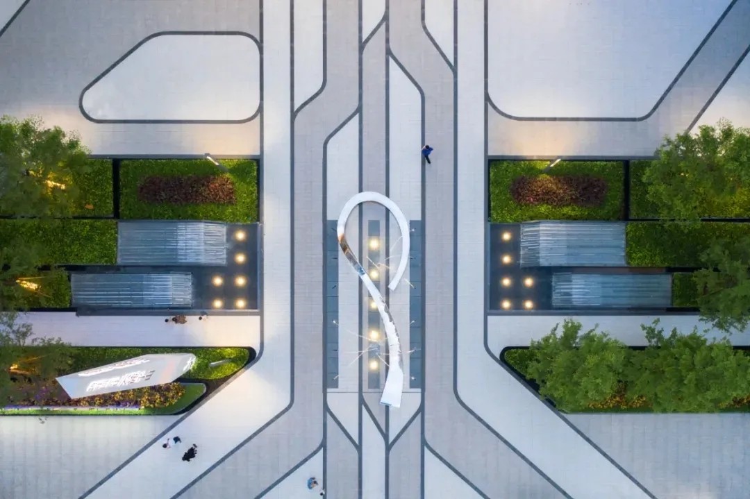 优雅灵动的线型、简洁纯净的色彩语言,富有韵律的构图,现代科技与古典美学相结合,古韵今趣,共同营造出精致简约并流动轻巧的景观建筑空间。