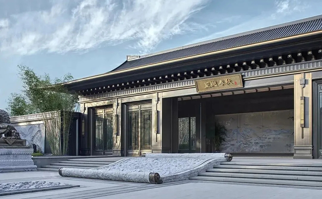 借故宫“金水桥”,塑意主入口“飞鸿迎宾”,