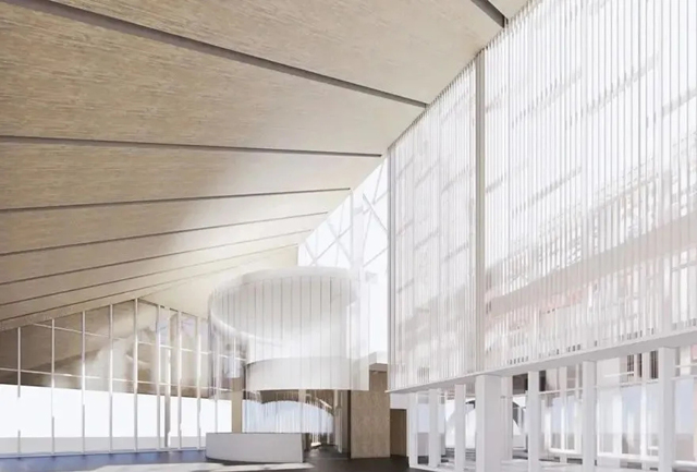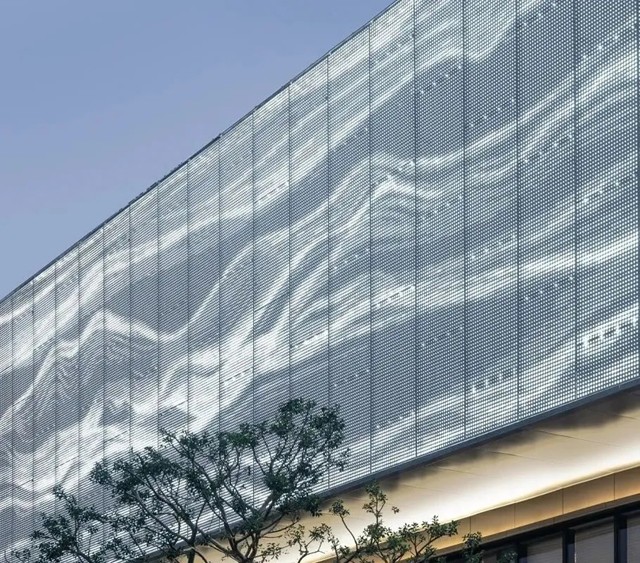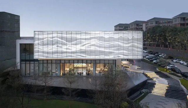 充满神秘感的书卷玻璃景墙吸引着人们的目光。