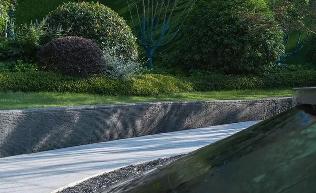 龟甲冬青球与片石铺装营造一种流动的景观观感,